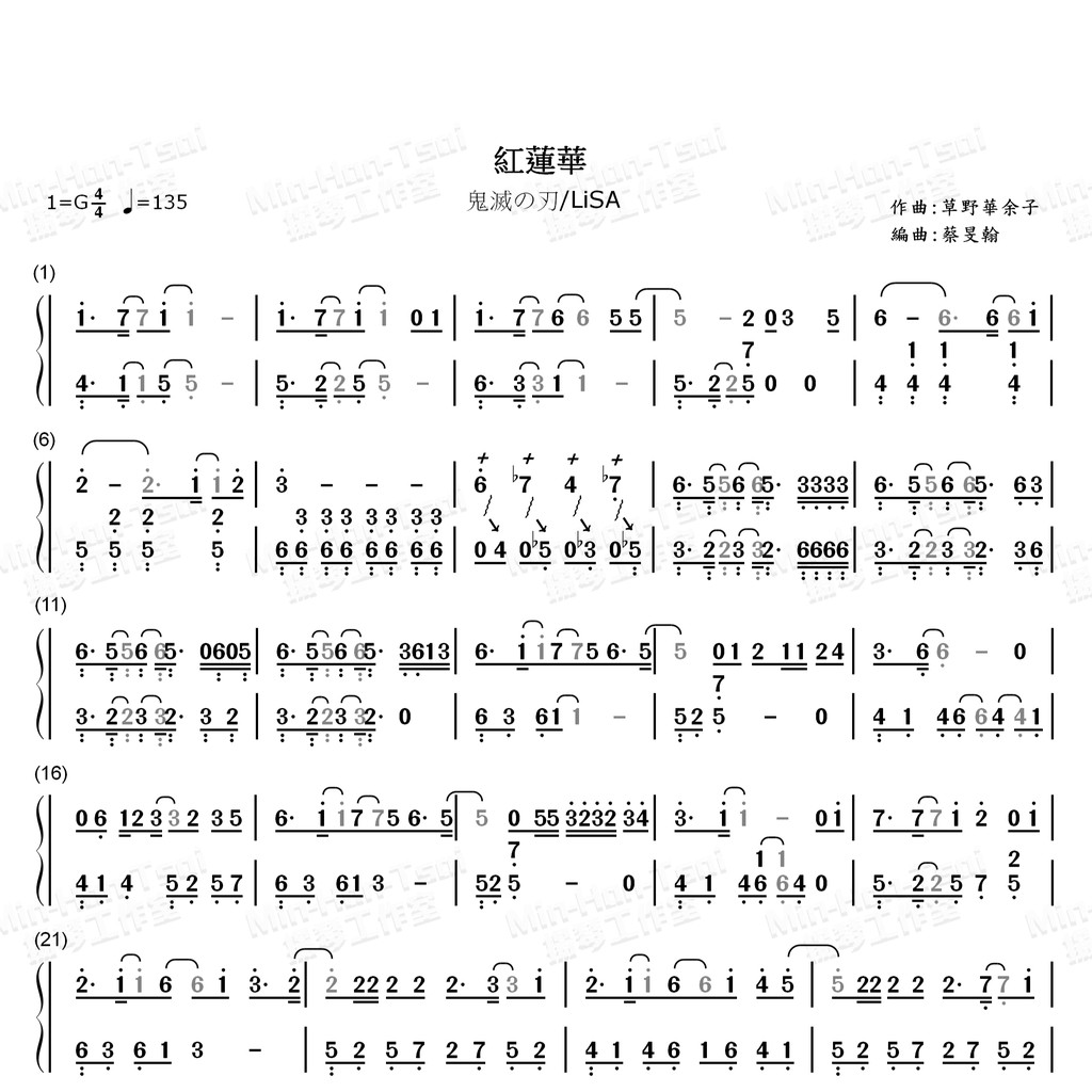 紅蓮華 簡譜 - 鬼çä¹åé'¢ç´è°± æ°äººé¦åç«ååå